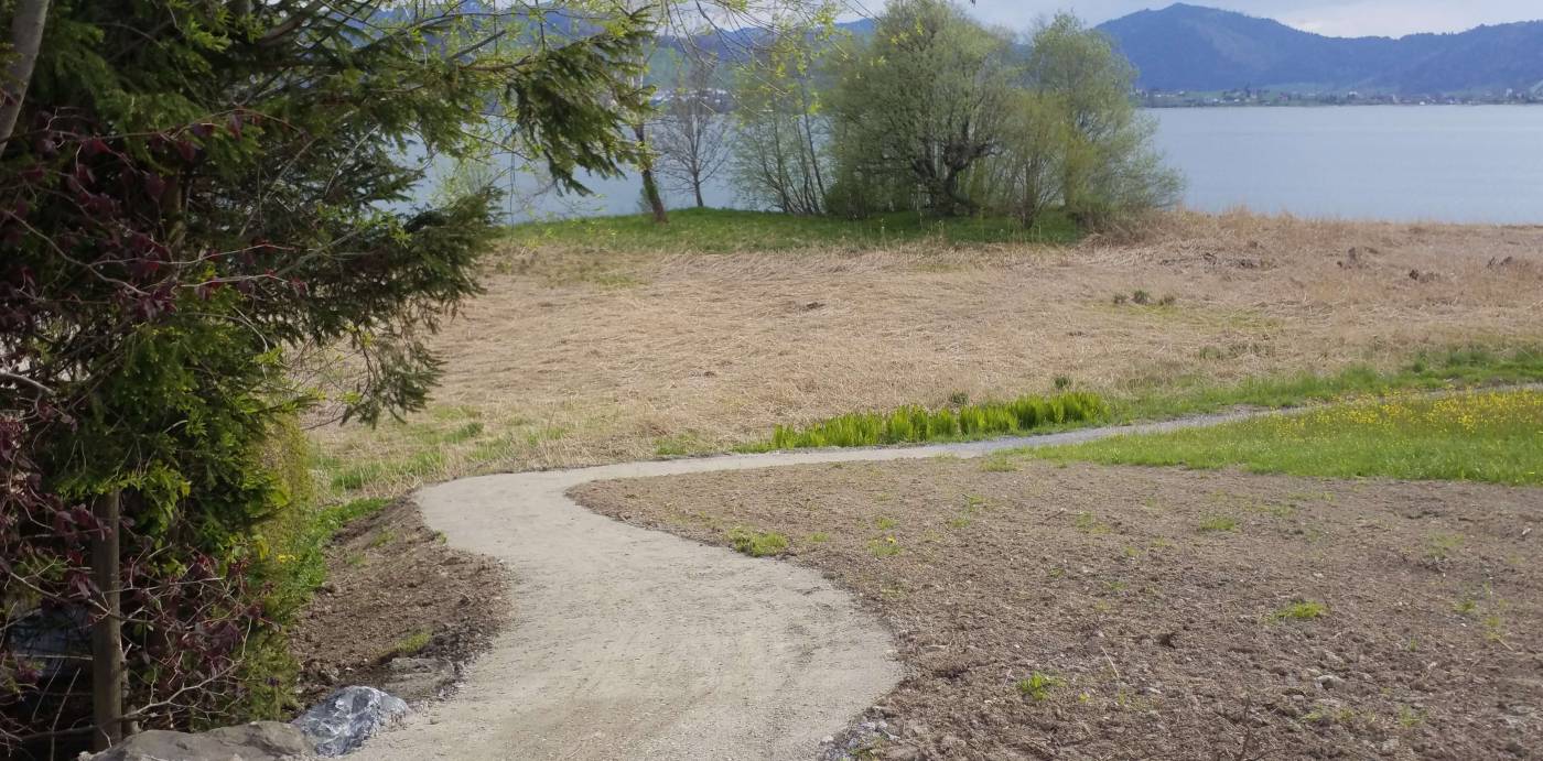 Das Entwicklungskonzept Sihlsee setzt sich zum Ziel, dass ein durchgängiger Wanderweg um den See in der Region Einsiedeln realisiert wird. Mit dem vorliegend realisierten Teilstück von ca. 900m Wanderweg, konnte eine weitere Lücke in diesem Wanderwegs Konzept geschlossen werden. Der Weg weist eine Breite von ca. 1.5m auf und führt aufgrund der Topografie über ca. 150m auf neu erstellten Stützkonstruktionen.