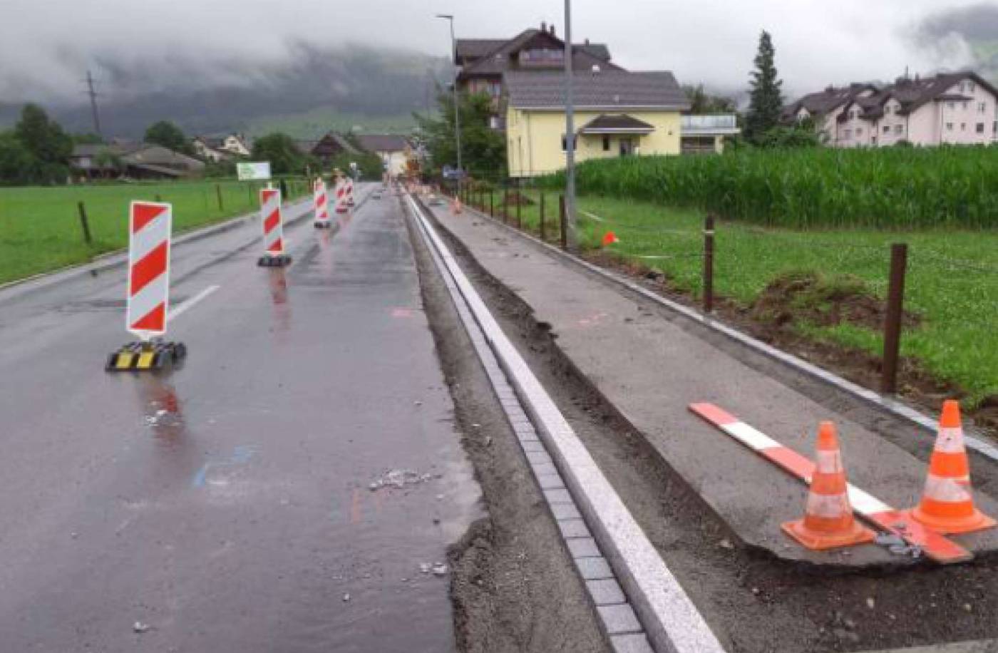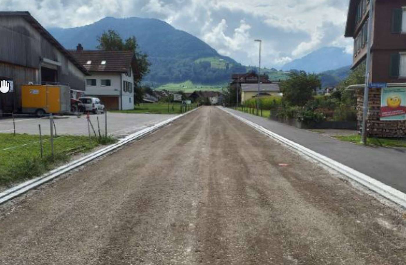 Im Auftrag des Bezirks March wurde über eine Länge von ca. 680m (Abschnitt Einmündung Schürwiesstrasse bis SBB-Unterführung) der komplette Fahrbahnbelag abgebrochen und durch einen neuen zweischichtigen Asphaltbelag ersetzt. Vorgängig wurde der Doppelbundstein entlang des Trottoirs durch einen neuen Trottoirrandstein inkl. Wasserstein ersetzt. Stellenweise waren Anpassungen an Vorplätzen (aufgrund von Höhendifferenzen) notwendig. An der Linienführung und der Breite der Fahrbahn und des Trottoirs wurde grundsätzlich jedoch nichts verändert. Aufgrund einer örtlichen Änderung des Quergefälles mussten zwei neue Schlammsammler für die Strassenentwässerung erstellt werden. Zu Lasten der jeweiligen Werke wurden die Abdeckungen von Kanalisations-, EW-, Telefon- und TV-Schächten ersetzt oder angepasst.